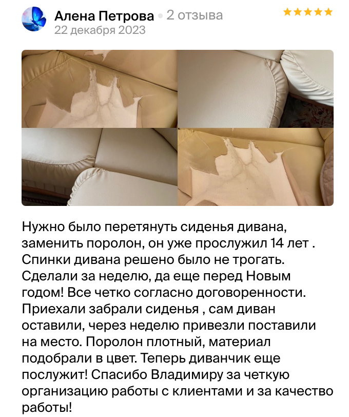 или перетяжку мебели?