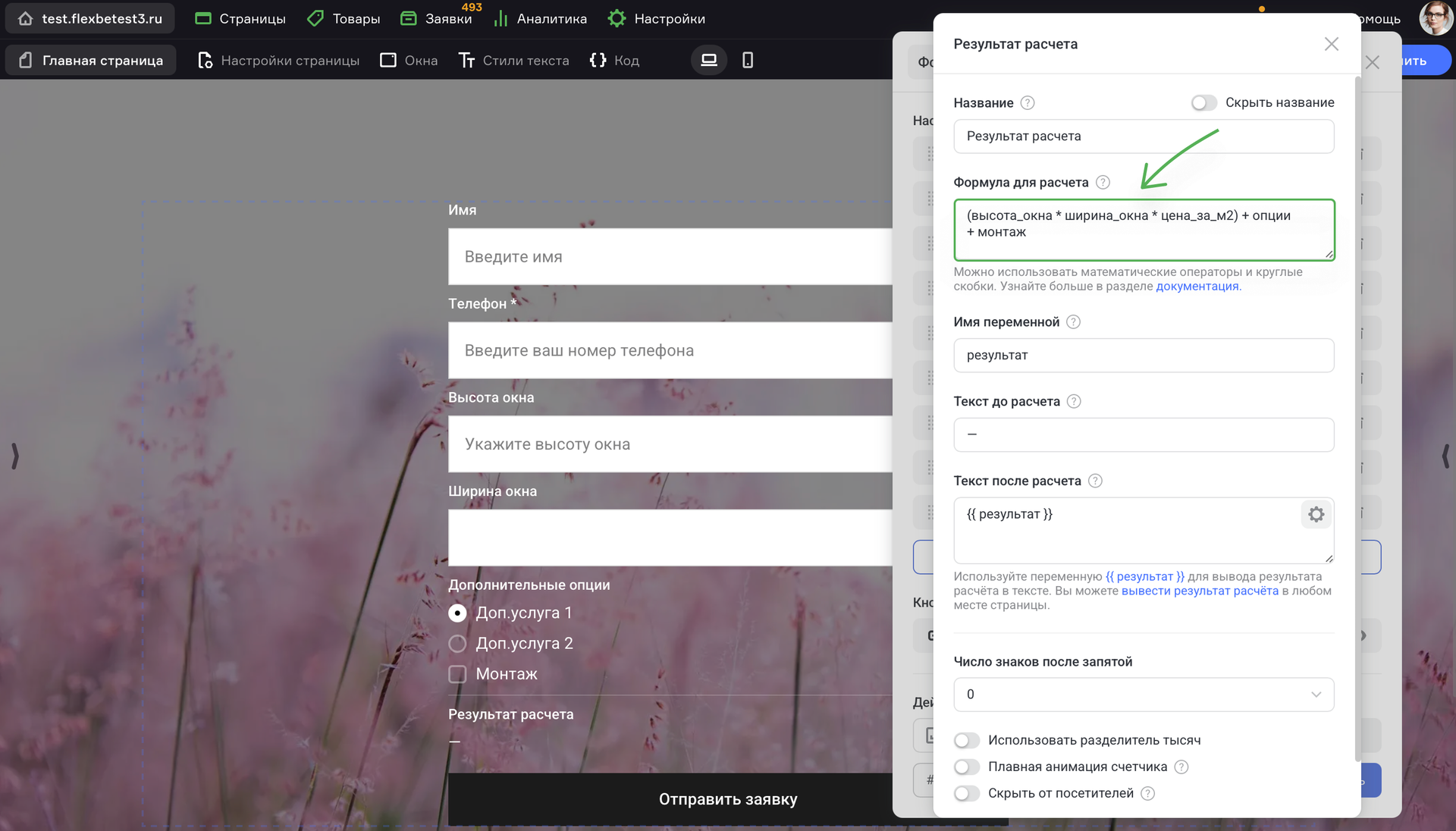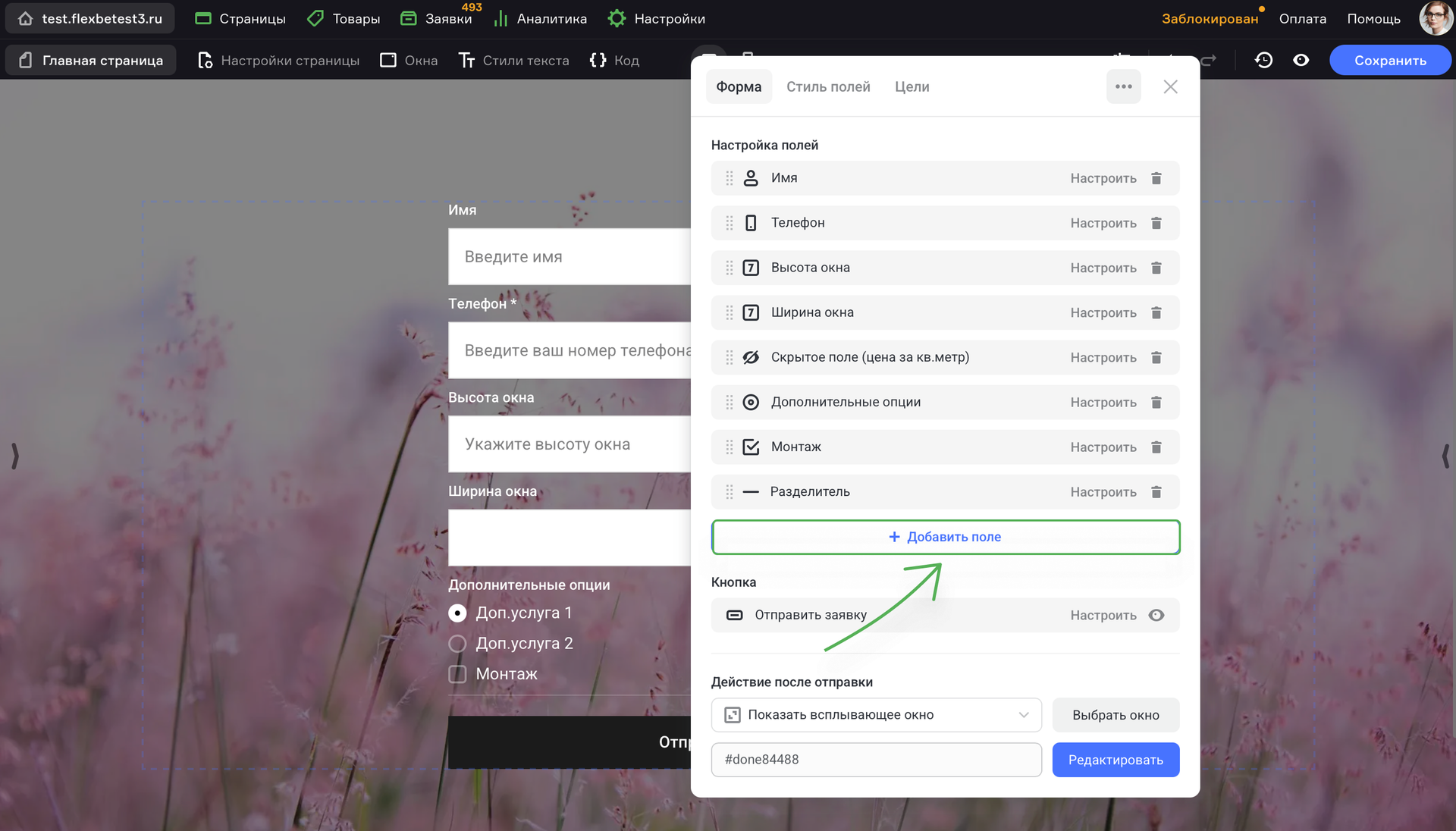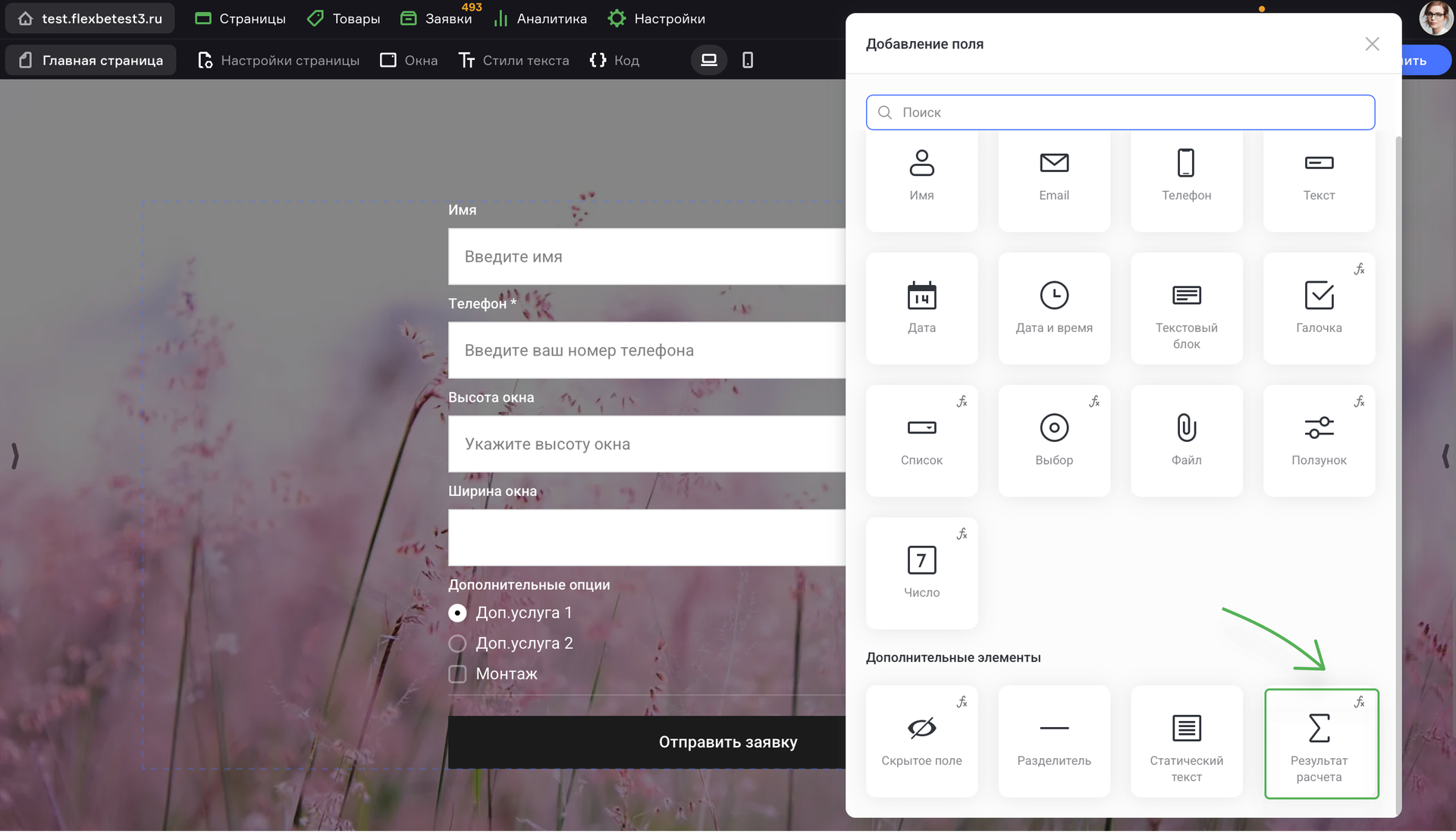 Чтобы добавить калькулятор полей на Flexbe, выполните шаги: